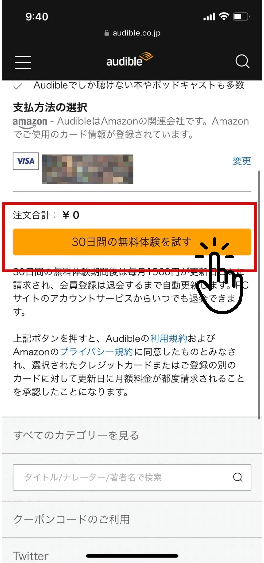 ※ここが最大の関門です!「アプリ」ではなく、「web」のオーディブルです!
